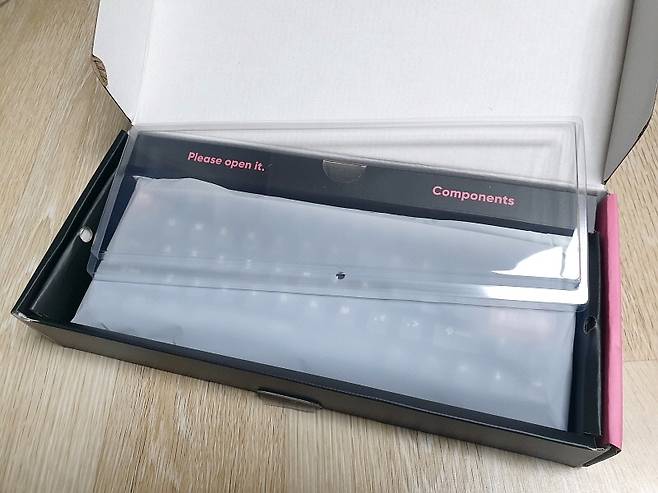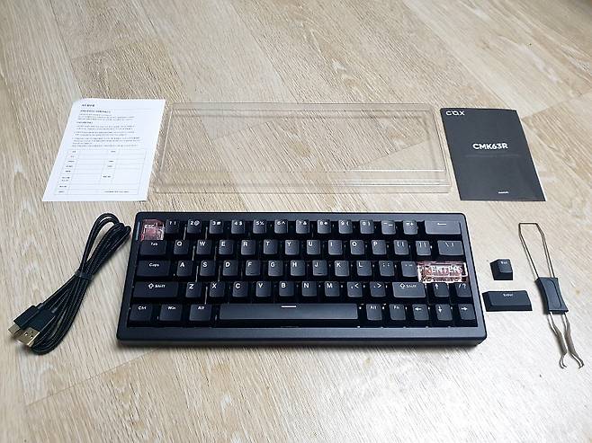 구성품은 키보드 본체, 키보드 덮개, C 타입 케이블(탈부착식), 리무버(키캡, 스위치), 키캡 2개
