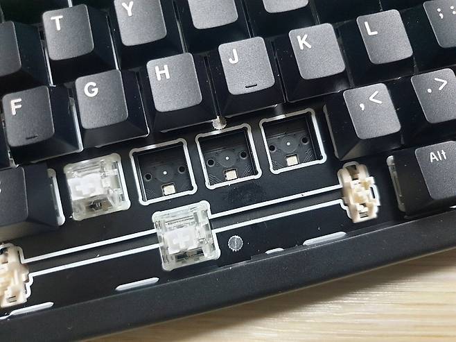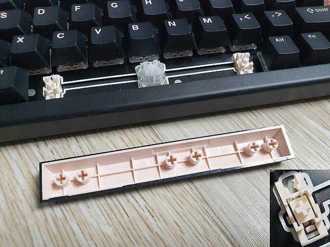 체리식 스테빌라이저에 윤활 처리까지 되어 있어 뒤틀림 방지와 일정한 타건감을 제공합니다.