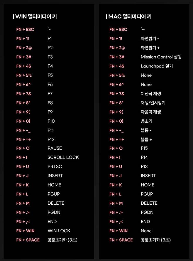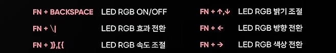 - 기능키를 통해 다양한 RGB LED 설정 가능 (효과, 색상, 밝기, 방향, OFF)