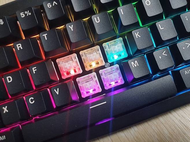 핫스압 방식의 설계로 스위치 고장시에 쉽게 교체가 가능하고, 키캡은 PBT 이중 사출 구조로
