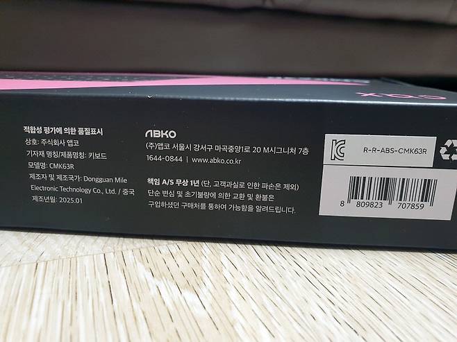 무상 보증 기간은 (주)앱코에서 1년입니다.