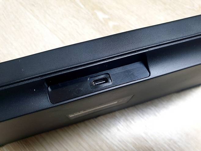 전원 포트 위치는 상단 가운데 아래에 있고 C 타입 입니다.