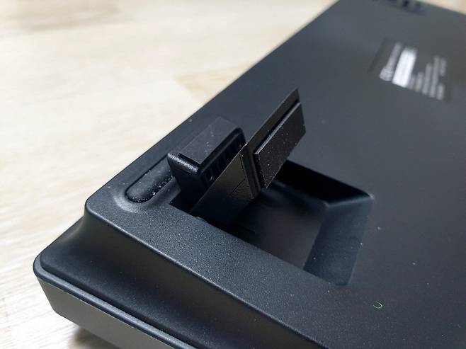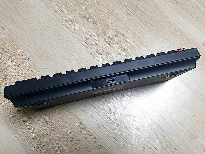 니다. 그리고 키캡은 영문 정각인으로만 되어 있습니다. 전원 포트는 C 타입으로 키보드 상단
