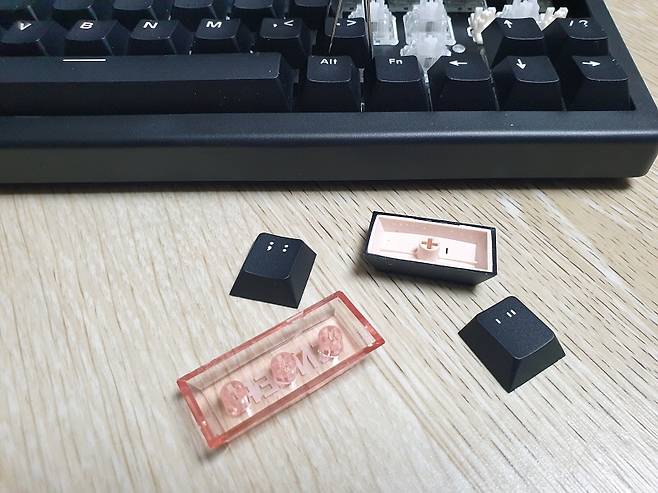 단단한 내구성에 ESC키와 ENTER키는 투명한 포인트 키캡으로 추가 제공(장착되어 있음) 합