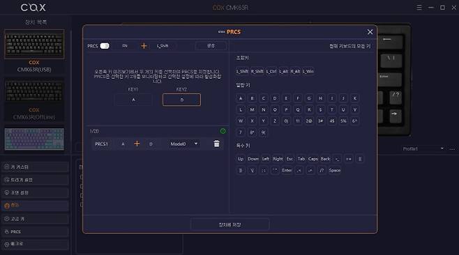 PRCS 메뉴입니다. 스냅탭 기능으로 두 키를 동시에 눌러도 마지막 입력을 우선하게 되어 있고,