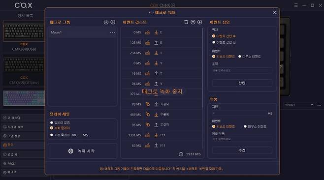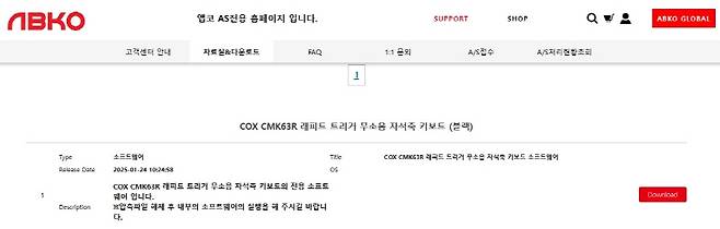 전용 소프트웨어는 ABKO 홈페이지 SUPPORT 메뉴에 가서 CMK63R 검색하면 다운로드 됩니다.