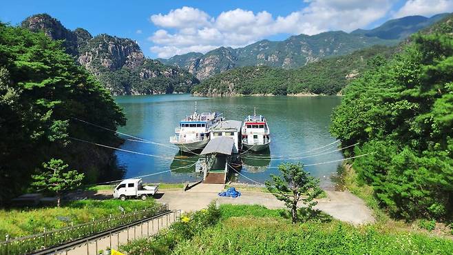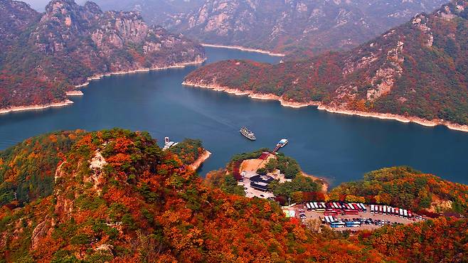 내륙의 바다’라 불리는 충주호의 수려한 경관을 가장 가까이에서 감상할 수 있는 방법은 바로 유람선을 타는 것이다.
