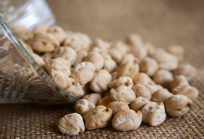 당근, 오이, 셀러리 같은 채소 스틱에 병아리콩으로 만든 후무스를 찍어 먹으면 섬유질과 단백질을 동시에 섭취할 수 있어요.
