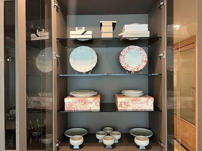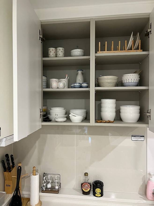 종류별 그릇끼리 섹션을 구분하여 넣고 꺼내기 쉽도록 간결하게 수납해 주었습니다.