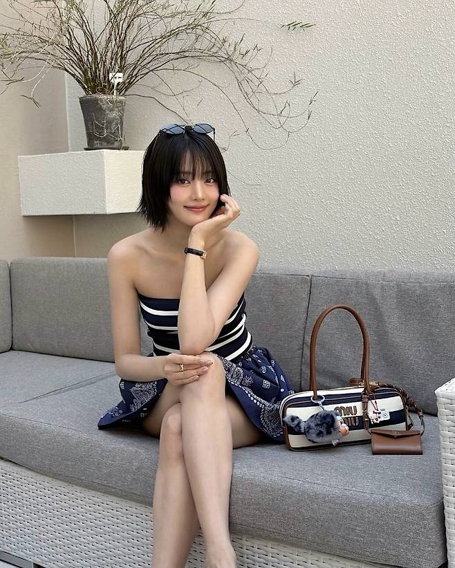 민니가 여름 햇살보다 청량한 리조트룩으로 시선을 사로잡았습니다.