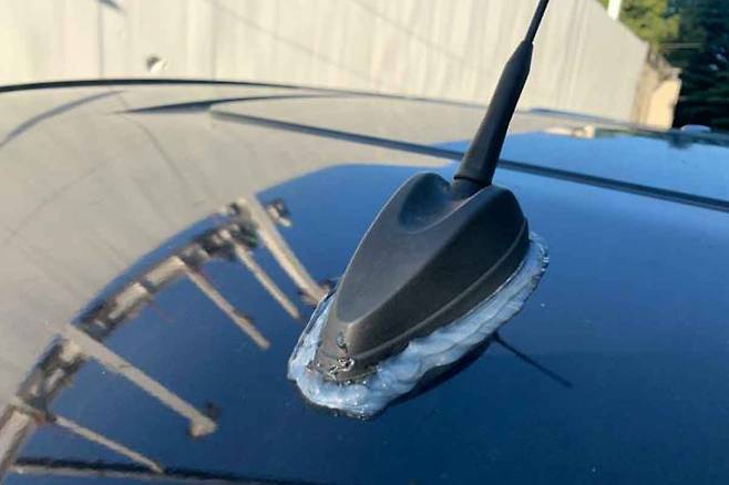 문제는 샤크 안테나가 채 마르지 않은 실리콘으로 고정됐다는 것. 작성자는 ‘지붕에서 한땀한땀 실리콘질’ 이라며 황당한 감정을 숨기지 못했다.