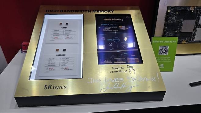 SK하이닉스도 이날 부스에 HBM4와 HBM3E 12단 제품을 엔비디아의 블랙웰 GB200 제품과 함께 전시하며 밀월 관계를 부각했다. 특히 전날 곽노정 SK하이닉스 사장은 황 CEO의 기조연설에 참석하기도 했다.