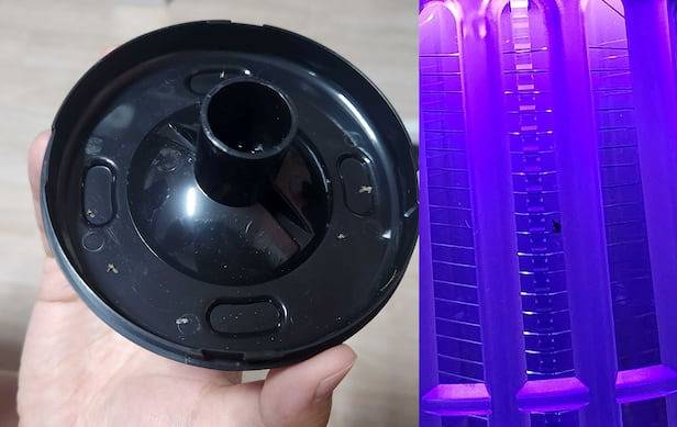 UV LED는 모기가 좋아하는 근자외선입니다. 멀리 있는 모기를 불빛으로 유인하죠. 모기가 다가오면 팬으로 빨아들인 뒤 전기충격으로 감전시켜 없앱니다.