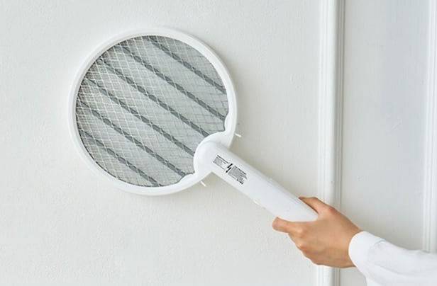 모기채와 손잡이 부분이 ‘ㄱ’ 자형이어서 벽면에 잘 밀착합니다. 벽으로 유인해 잡을 때 모기가 새어 나갈 틈이 없습니다.