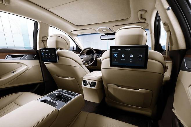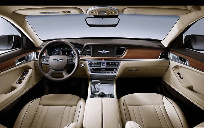 G80의 실내는 출시 당시부터 동급 최고 수준으로 평가받았다. 리얼 우드, 고급 가죽, 알루미늄 소재가 어우러진 인테리어는 프리미엄 세단의 질감을 충분히 갖추고 있으며, 14.5인치 와이드 모니터와 디지털 기반 조작계는 지금 봐도 경쟁 모델과 비교해 뒤처지지 않는다.