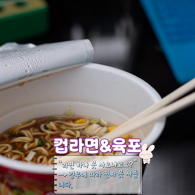 컵라면이 금지라고 하면 “에이~ 설마요” 싶겠지만, 스프 안에 고기 덩어리가 들어 있으면 검역에서 무조건 아웃! 육포도 마찬가지로 육류 가공품이라 반입 금지예요. 이부분은 일본뿐만 아니라 어느곳을 가더라도 검역에서 잡히기 때문에 평상시 알아두면 좋은 꿀팁이랍니다.