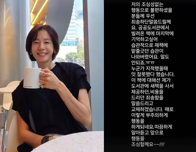 배우 김지호는 공공도서관 대출 도서에 필기를 한 사실이 알려지며 논란이 일었다. 김지호는 지난 18일 개인 계정에 소설가 김훈의 '저만치 혼자서'를 읽는 사진을 게시했다. 해당 도서는 개인 소장이 아닌 공공도서관 대출 도서로 확인됐으며, 책 곳곳에 다수의 밑줄이 그어진 모습이 포착되면서 비판이 제기됐다. 김지호는 사과문을 게재했으나, 과거 유사 사례까지 재조명되며 비판이 이어졌다. 일부 누리꾼들은 3년 전에도 김지호가 공공도서에 밑줄을 그은 게시물을 올린 바 있다고 지적했다. 또 2014년 방송된 예능 프로그램 '삼시세끼' 출연 당시의 태도가 다시 언급되며 도마 위에 올랐다.