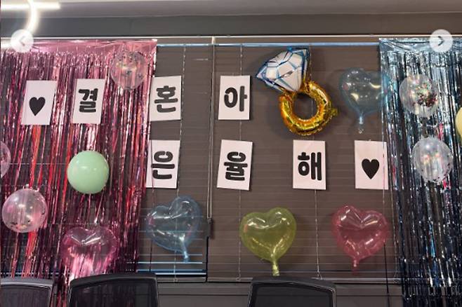 함께 업로드 된 사진에는 면사포를 쓴 정숙의 셀카와 “결혼아 은율해”라는 문구가 적힌 이벤트 현장이 담겨있었습니다.💕