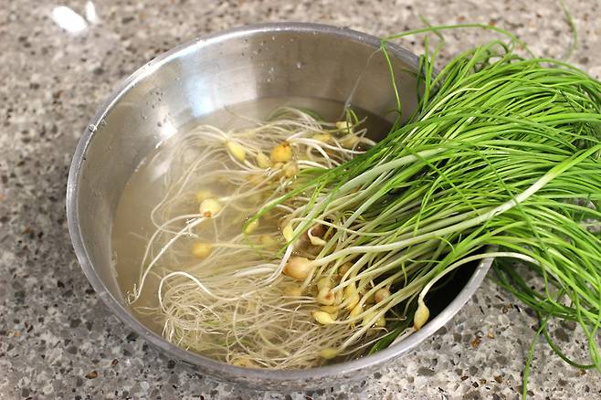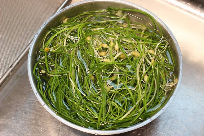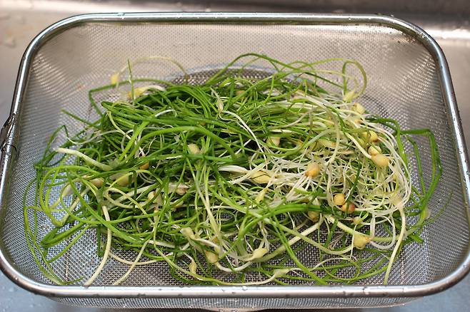 깨끗하게 세척 끝. 마트에서 판매하는 달래는 보통 한 번 세척해서 나오기 때문에 이정도로도 괜찮더라고요.