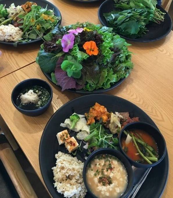 '열명의 농부'의 식사는 100% 유기농 채소로 만든 채식 요리로 제공됩니다. 건강한 식사를 통해 몸과 마음의 디톡스를 경험할 수 있습니다.