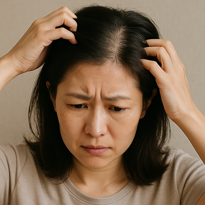 단순한 남성형 탈모나 여성형 탈모와 달리 갑상선으로 인한 탈모는 전체적으로 고르게 빠지는 양상을 보입니다.