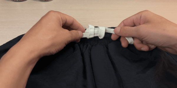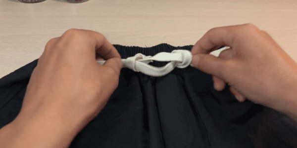 바지 끈이 너무 길 때는 가운데 부분을 한번 묶은 뒤 두 가닥을 매듭법으로 마무리하면 깔끔합니다. 바지 끈 색상, 굵기에 따라 맞춤 매듭을 활용하면 후드티, 트레이닝복, 학교 체육복 등 어디든 잘 어울립니다.