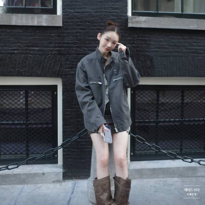 미니스커트와 자켓을 매치하여 세련된 느낌을 연출합니다.