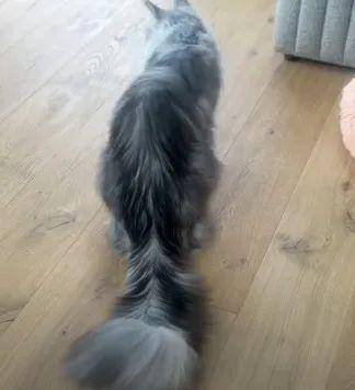하지만 주인에 따르면 긴 꼬리는 가끔 방해가 되기도 합니다. 특히 고양이가 흥분할 때는 더욱 그렇습니다. 주인이 먹이를 주려고 할 때, 조심하지 않으면 파슬리의 꼬리가 곧게 서서 주인의 얼굴에 부딪힐 수도 있습니다.