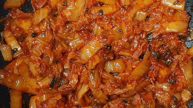 김치가 충분히 볶아지면 새콤달콤 맛있는 김치볶음 완성이에요