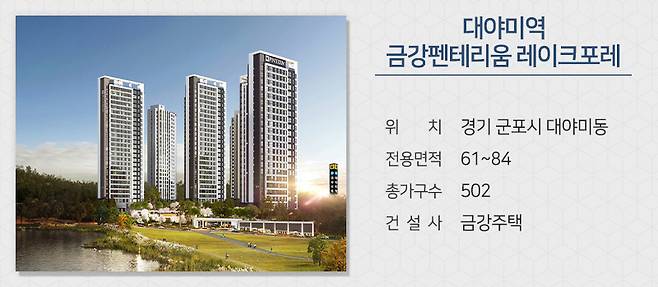 금강주택이 경기 군포시 군포대야미 공공주택지구에 짓는 '대야미역 금강펜테리움 레이크포레'를 분양합니다. 군포대야미지구는 그린벨트 해제로 5,000여 가구가 들어서는 쾌적한 주거환경의 신흥 주거지 입니다. 사업지 주변으로 유치원, 초·중교 부지가 예정돼 있어 통학하기 좋고 분양가 상한제 적용으로 합리적 가격에 공급이 됩니다.