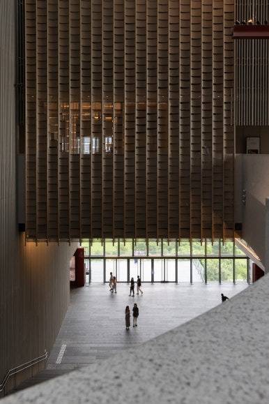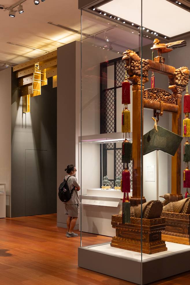 박물관 입구에서부터 고개를 뒤로 잔뜩 젖혀 본다. 비밀스러운 자태를 뽐내는 자금성의 아름다움을 세련되고 현대적 미학으로 재해석했다는 외관을 확인하기 위해서다. 1만 3,000제곱미터 면적의 거대한 건축 규모는 베이징에 있는 자금성의 위용을 이곳 서구룡 반도까지 충분히 전해준다. 내부에도 자금성의 정체성이 이어진다.