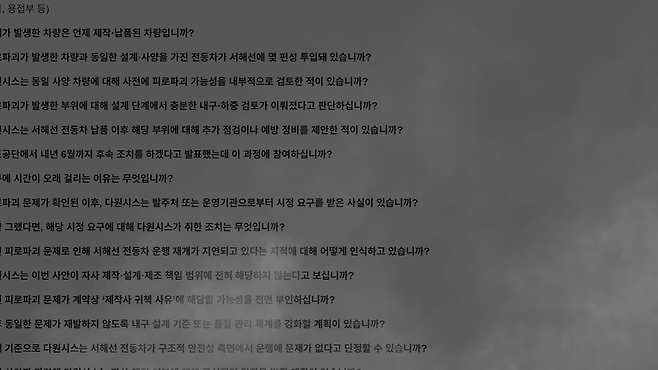 구체적으로 어떤 절차를 통해 어떤 방식으로 사고 열차를 점검할 건지 궁금해서 다원시스에 메일까지 보냈는데 역시나 답은 오지 않았다.