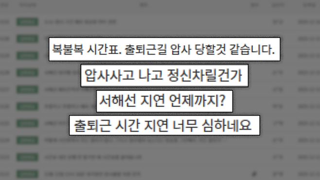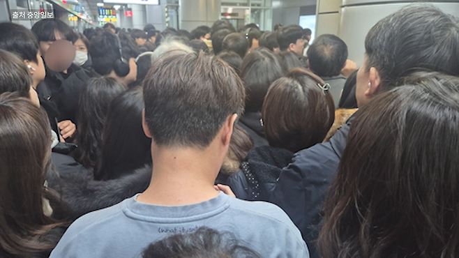 이 사진을 보라. 한 왱구님이 제보해주신 건데, 수도권 서해선 전철역 중 하나인 소사역에서 승객들이 꼼짝달싹하지 못하는 모습. 서해선 민원 게시판에는 ‘압사당할 뻔했다’ ‘출근시간에 기차가 20분 넘게 지연되는 건 선 넘은 거 아니냐’는 울분이 쏟아져 나오는 중.