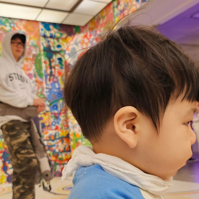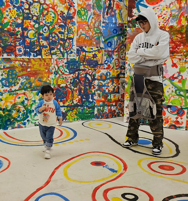 제이쓴은 후드티에 편안한 바지를 입고 운동화를 착용한 나들이룩을 선보였다.