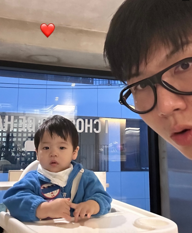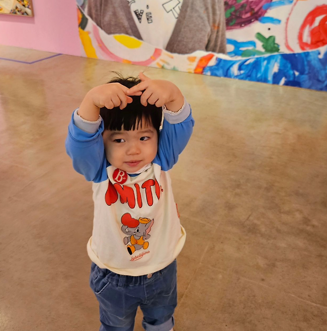 준범이는 레터링된 티셔츠에 청바지를 입고 하트 포즈를 만들며 깜찍함을 뽐내 눈길을 끌었다.