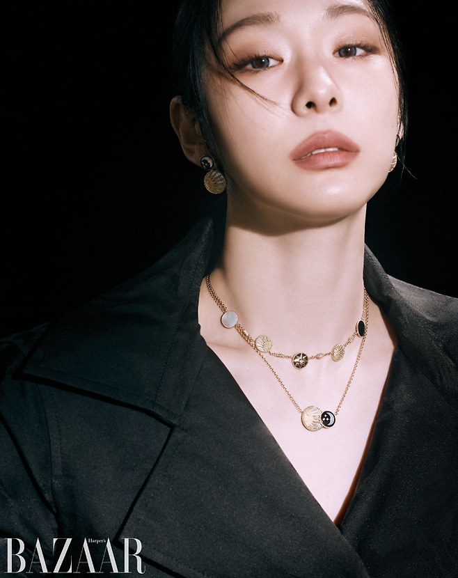 반면, 블랙 홀터넥 드레스를 입은 컷에서는 주얼리의 화려함을 극대화해 강렬하고 고혹적인 분위기를 완성했다.
