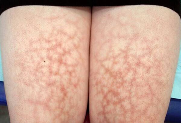 ‘열성홍반’은 피부가 화상을 입지 않을 정도인 43~47도의 강한 열에 지속적으로 노출되며 그물 모양의 홍반과 색소 침착이 나타나는 것입니다. 처음에는 열에 노출된 부위에 붉은 반점 모양의 병변이 나타나고 점차 고리 모양이나 나선 모양으로 홍반이 진행되면서 혈관 확장은 물론 갈색의 심한 색소 침착이 생깁니다. 열성홍반이 생기면 가렵고 화끈거리며 뱀의 피부처럼 보이기도 합니다.
