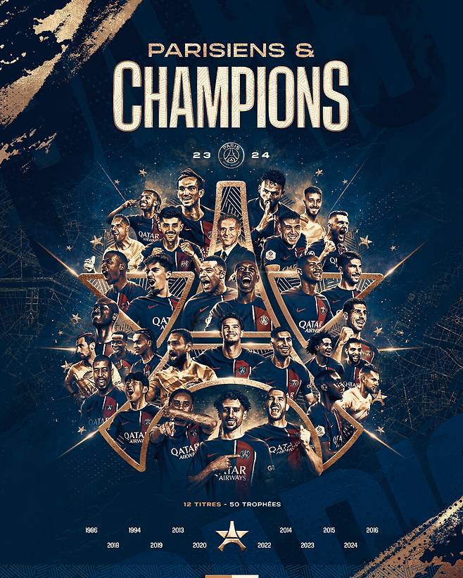 이번 우승으로 PSG는 3시즌 연속 리그 정상에 올랐습니다. 통산 12번째 리그 우승을 차지하며 구단 역사상 50번째 트로피를 획득했습니다.
