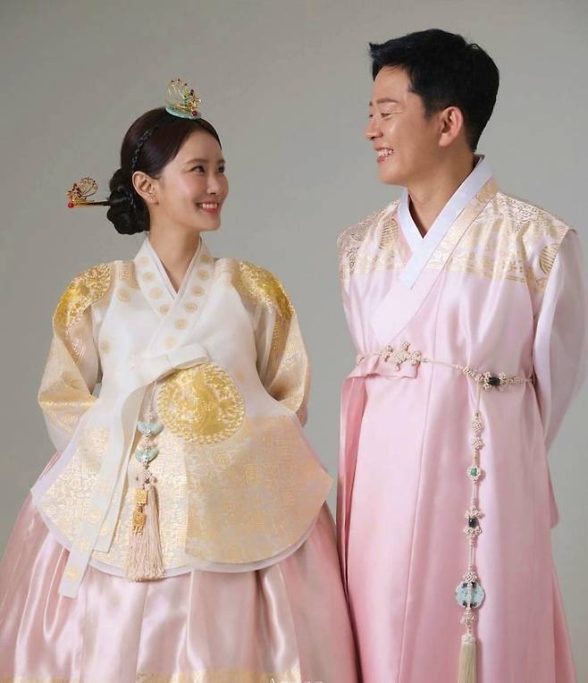 웨딩화보에서 한복이 빠지면 섭하죠! 은은한 파스텔톤 한복이 두 사람의 꿀 떨어지는 비주얼을 더욱 돋보이게 하는 것 같아요! 🥰