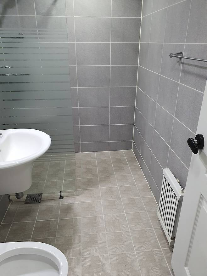 10년 전 집주인이 다행히 벽 타일은 제 스타일에 맞는 걸 해주셔서 저희는 예산을 아끼고자 도기류, 벽타일 등 그대로 두었고 정말 욕실 바닥타일만 교체했습니다!