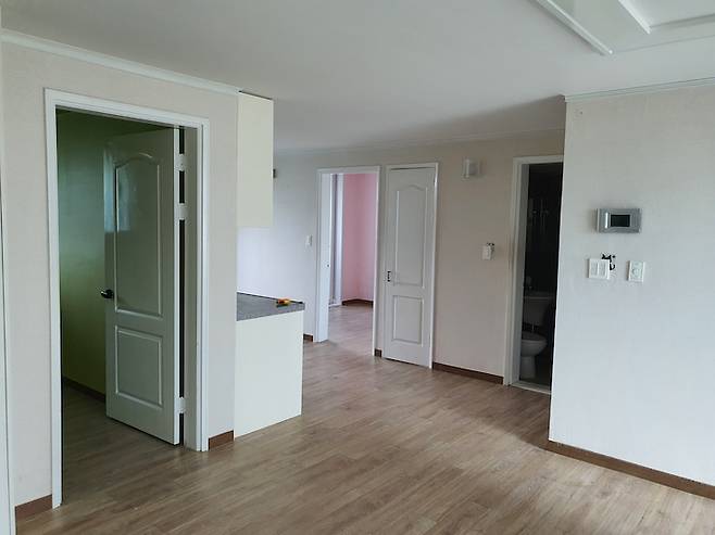 그러나 바닥 데코타일은 다 벌어져 있고, 흰색 벽이 누래져 있으며, 방 벽지는 핑크색, 연두색이어서 리모델링을 꼭 하고 싶었습니다.