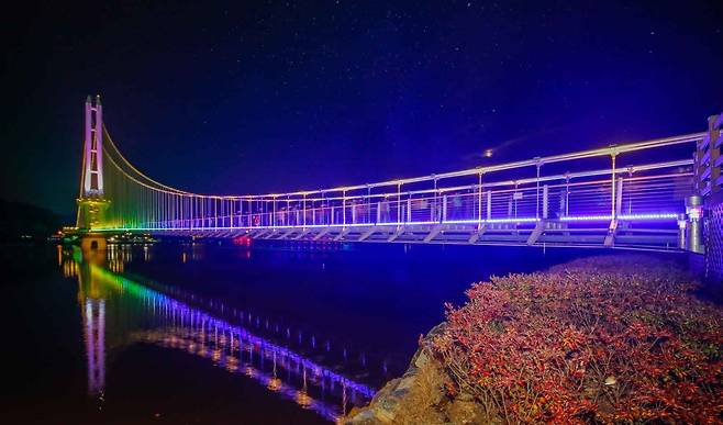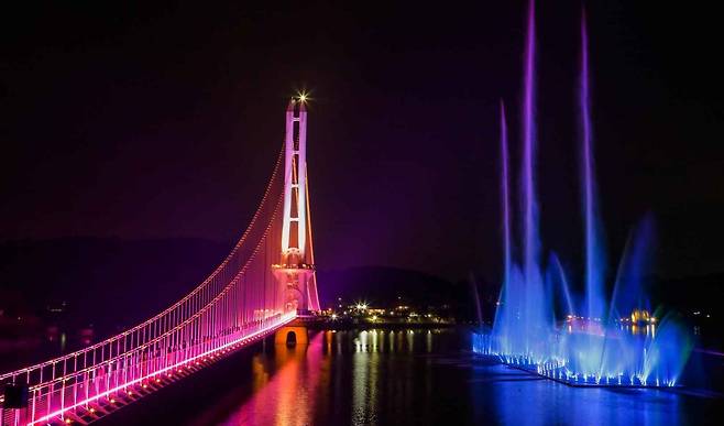 낮에는 호수와 어우러진 수려한 풍경이, 밤에는 그러데이션 기법으로 색이 변하는 무지갯빛 LED 조명이 환상적인 야경을 선사한다.