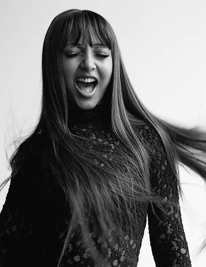 핑크는 그의 가족과 20대 초 소녀의 어설픎을 아우른다. “데이트하는 것을 좋아하지만, 누굴 만나려고 애쓰지는 않는다.” 그는 대화 중간중간 휴대폰을 보고 미소를 지었고, 한번은 잠시 멈추고 남자에게 보낼 셀피를 찍기도 했다. 우리 모두 그런 시절을 보내 봤을 거다. 그가 혜성처럼 음악계에 나타나 인기를 누리게 된 것은 꿈같은 일이었다. 그는 켄드릭 라마(Kendrick Lamar) 곡에 참여했을 “뻔했던” 이야기를 해 줬다. 이때 그는 영화관 데이트를 즐기느라 휴대폰을 무음으로 설정해 뒀고 그렇게 라마의 문자와 스튜디오 세션을 놓쳤다. “생각하는 것만으로도 힘들다. 어떤 남자애랑 ‘나이트 크롤러(Nightcrawler)’를 보고 있었다.”