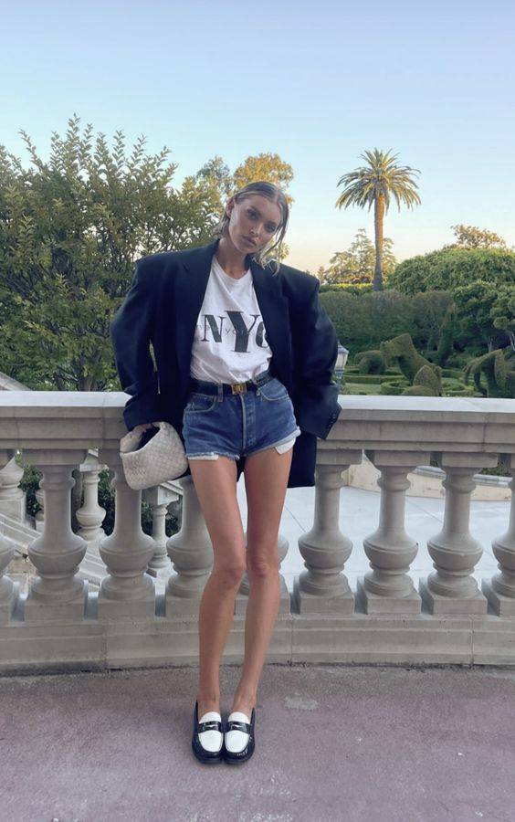 블랙 블레이저에 짧은