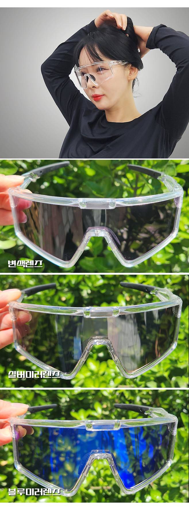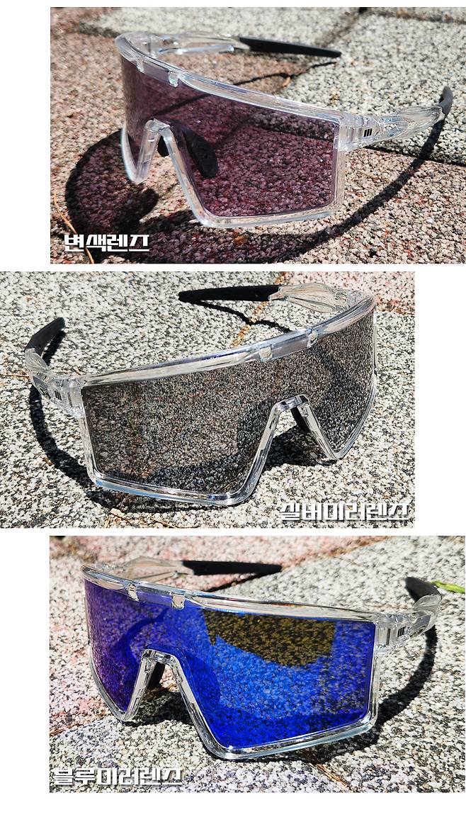 자외선을 받으면 색이 변하는 변색렌즈와 쿨내음 가득인 블루미러렌즈,