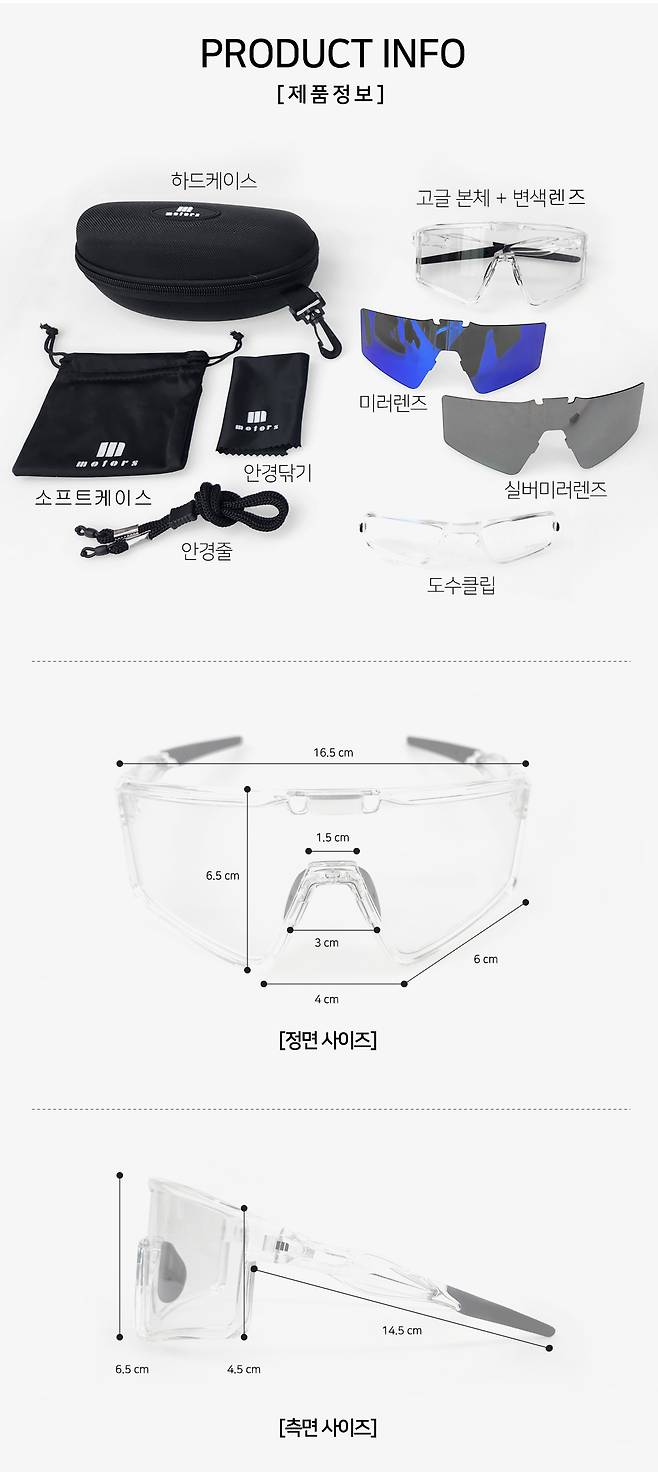 시크한 느낌이 나는 실버미러렌즈 총 3종의 렌즈가 패키지로 들어 있어