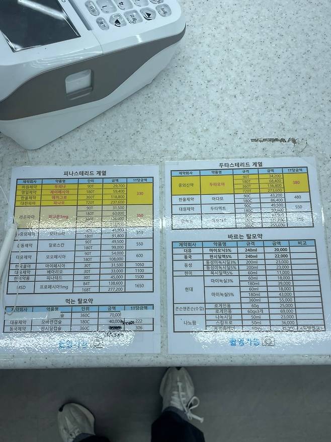 (약 정보 물어보시는 분들이 많으셔서, 피나계열에 두피나정 미래약국에서 받았습니다.)