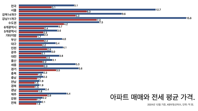 지역별로 보면 전국 아파트 전세가격 평균은 3억 원을 넘어섰다. 서울 강북은 5억 원, 강남은 7억 원 수준이다.
