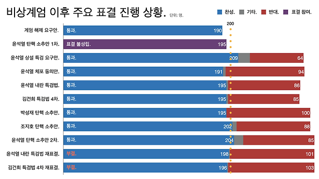 내란 특검법도 찬성 198표에 반대 101표, 기권 1표로 부결됐다.