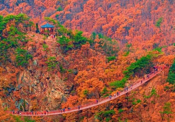 이곳은 가을철 출렁다리를 건너며 단풍으로 물든 화려한 감악산을 감상할 수 있어 가을철 많은 관광객들이 방문하고 있는 파주 가을 명소입니다.